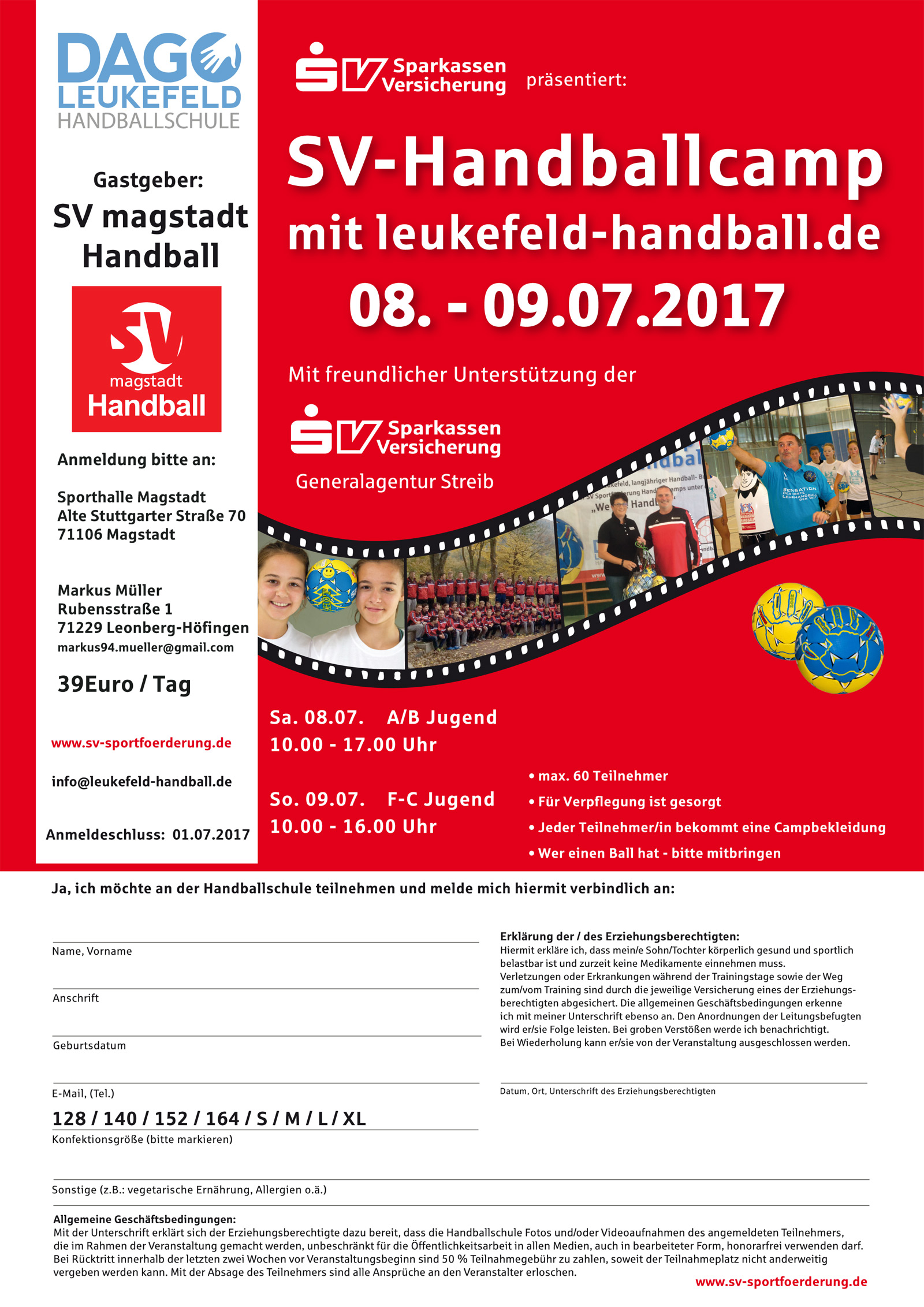 Vom 08.-09.07.2017 führt Dago Leukefeld gemeinsam mit der SV Sportförderung ein Handballcamp beim SV Magstadt durch.
